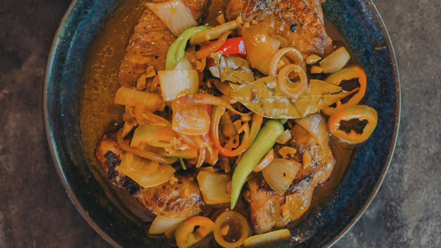 The dish was made with wild pigs, a lot of garlic, homemade coconut vinegar and laurel leaves, all simmering in the kitchen for hours. “He always bought whole peppercorns as he enjoyed crushing them himself.”